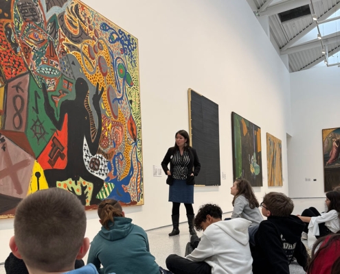 Au Musée d’Art Moderne et Contemporain, au cours d’une visite guidée intitulée « Donner du sens », ils ont découvert les missions du musée, ses collections, son architecture, son histoire. Ils ont parcouru les différents espaces : parvis, hall, bibliothèque et les salles d’expositions pour une approche d’oeuvres contemporaines.
