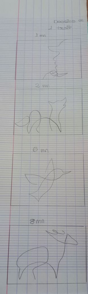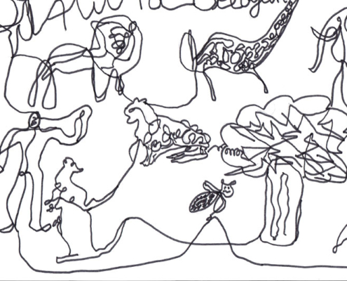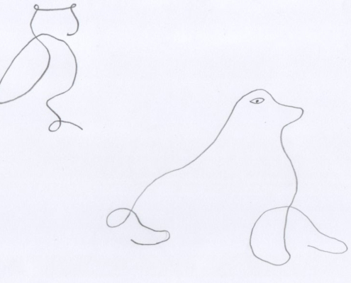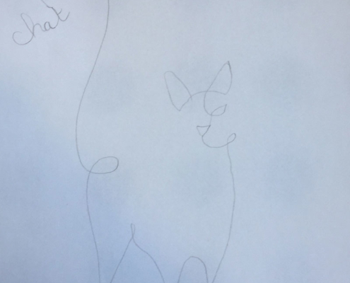 Ce défi national propose plusieurs thématiques mais j’ai choisi de concentrer ma demande sur ce point précis car c’est un exercice de dessin que je trouve très inspirant. De mon point de vue, il nous permet justement de reconsidérer notre manière de voir le dessin et donc plus généralement « les choses de nos vies ». Faire un dessin sans lever le crayon nous oblige à tracer des lignes qu’on ne veut pas ou à repasser plusieurs fois sur un trait pour trouver la courbes exactes, ou alors à laisser le trait tel quel, même s’il n’est pas exactement comme on le souhaite. Un exercice de lâcher prise donc !