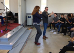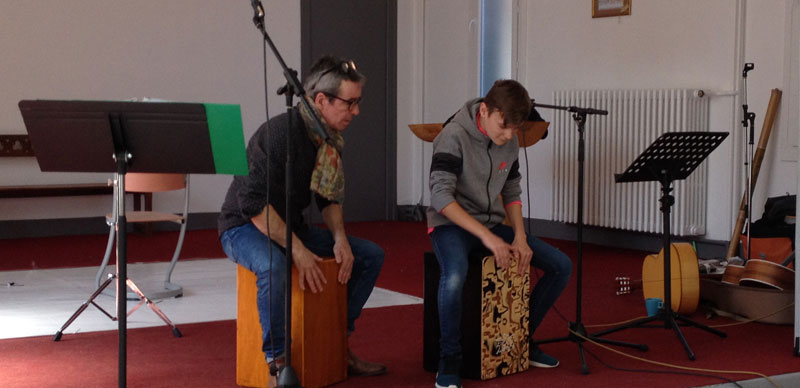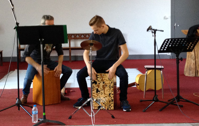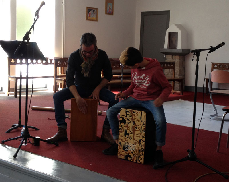 Il ne s’agissait pas d’être seulement spectateur mais acteur à part entière ainsi certains se sont initiés au cajón et tous ont appris à pratiquer « las palmas », utilisation des mains comme percussions dans le flamenco.