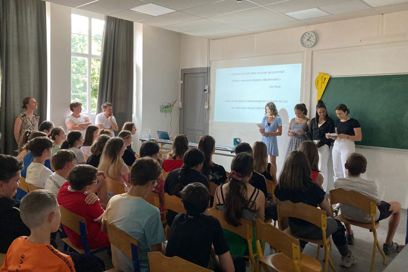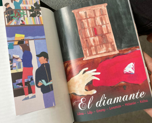 Grâce au travail d’imagination autour de nouvelles policières, au jeu d’écriture avec l’auteure, au plaisir d’illustrer avec les conseils précieux de l’illustrateur et à la rencontre avec une libraire et un imprimeur, les élèves ont découvert toute la chaîne du livre accompagnés par des intervenants passionnés par leur métier.