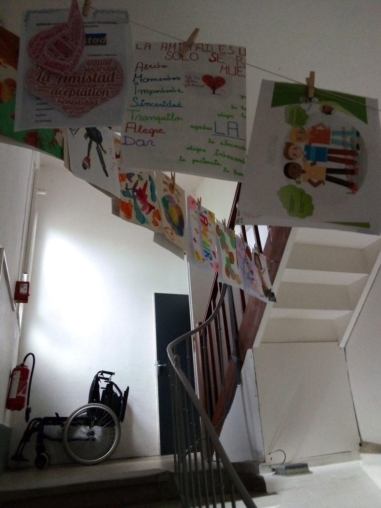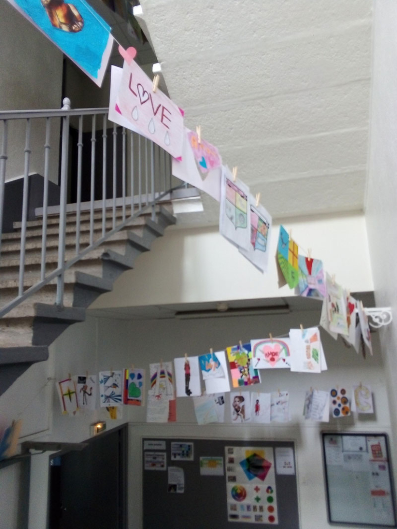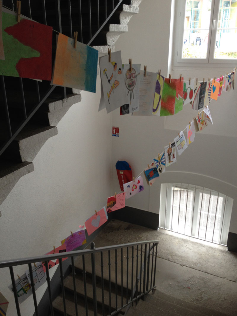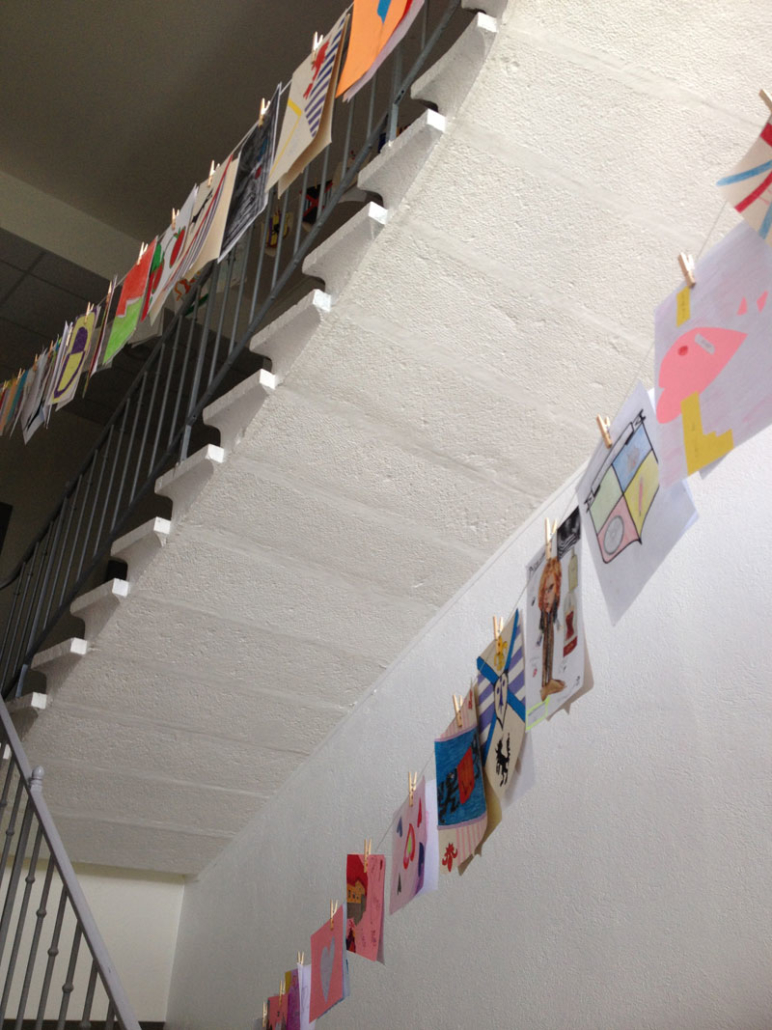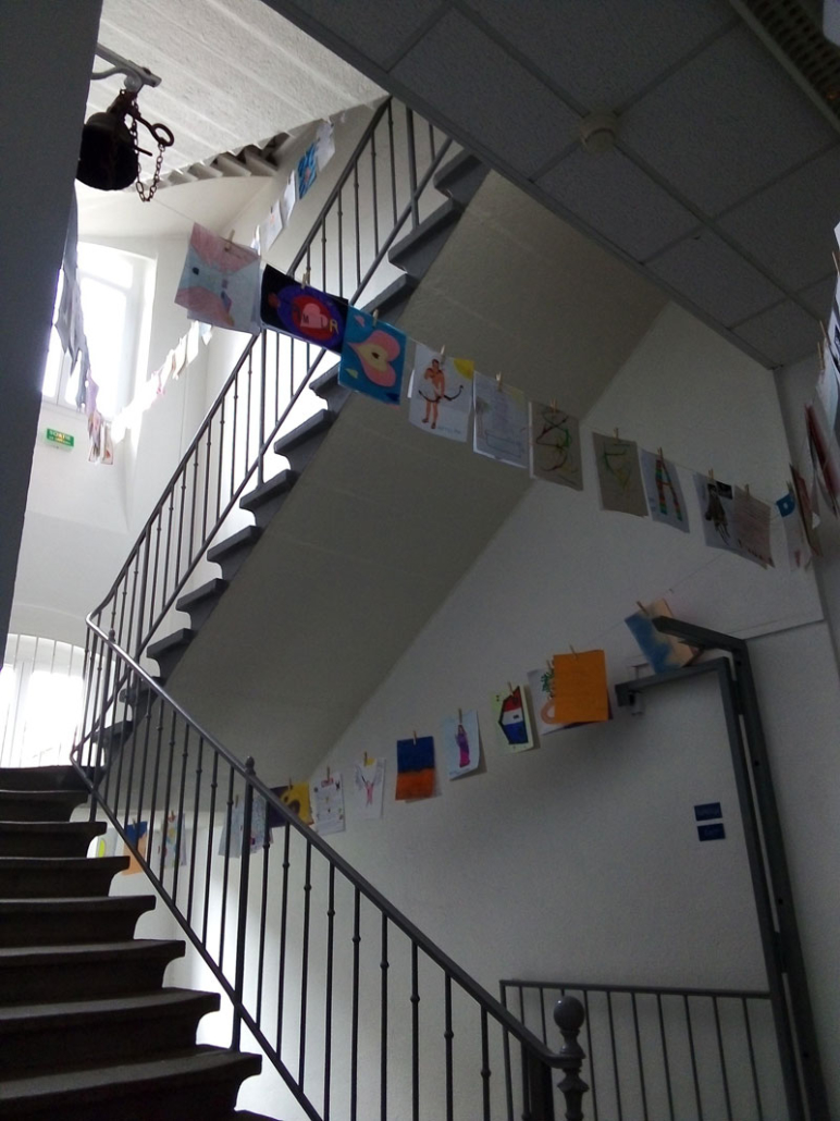 Nous avons choisi d’installer cette œuvre commune dans la montée d’escaliers.
