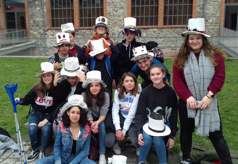 L’après-midi, ils ont participé à un atelier pour confectionner leur chapeau afin de travailler sur des compétences plus liées aux Arts Plastiques. Il s’agissait de confectionner un chapeau haut-de-forme en utilisant les techniques traditionnelles de fabrication d’une modiste. Ils ont dû mesurer le tour de tête, réaliser la calotte puis le bord et afin assembler avant de décorer avec différentes matières.