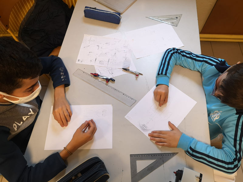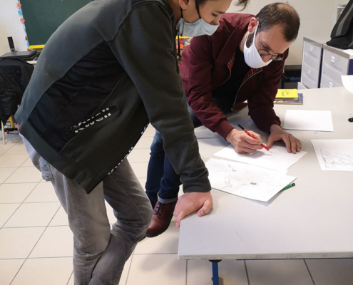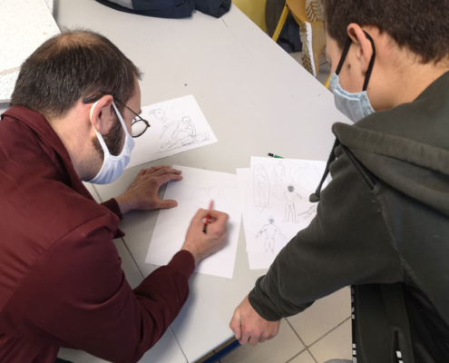 En même temps, l’élève devra réaliser des recherches de graphismes pour ses personnages et le décor.