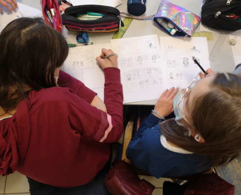 Puis, chacun devra écrire un scénario pour le présenter à l’illustrateur qui lui donnera les consignes pour le découpage de l’histoire pour le story-board.