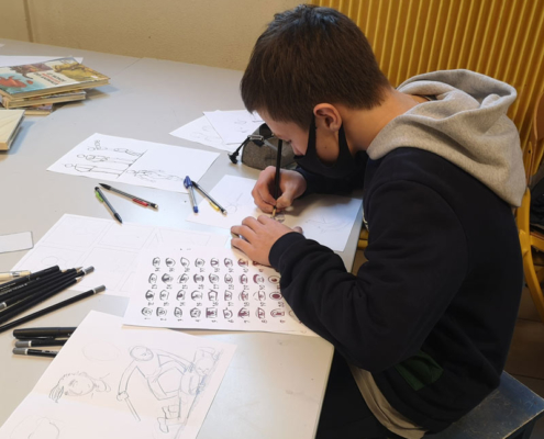 Ce projet concerne les élèves de l’atelier « Arts » et ils seront accompagnés par l‘illustrateur stéphanois Ulric Stahl qui travaille pour la presse jeunesse, des manuels scolaires et des jeux éducatifs.