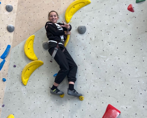 Nos élèves qui ont pu s’exercer au collège à la grimpe sur du bloc, à la manipulation du matériel nécessaire et à la sécurité de soi et des autres, ont mis à profit leur enseignement sur des voies allant jusqu’à 17 m.