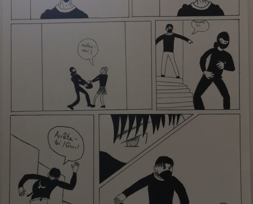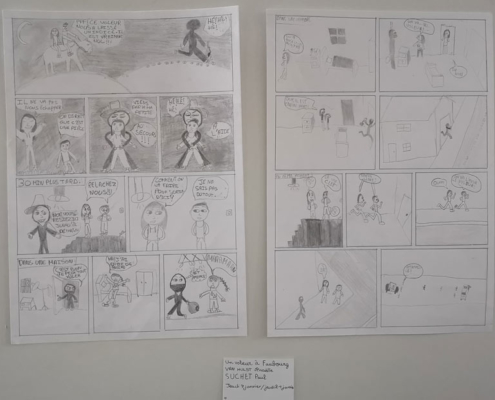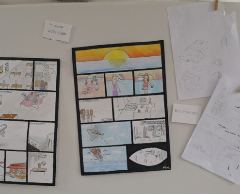 Jeudi soir, c’était le vernissage de l’exposition « Je suis hors cadre » qui marquait l’aboutissement du projet , un atelier création d’une planche de BD avec l’artiste stéphanois Ulric Stahl.