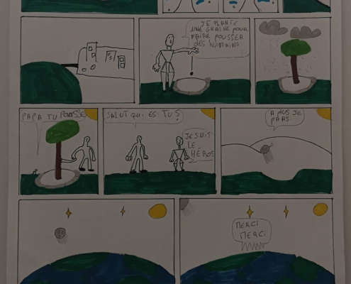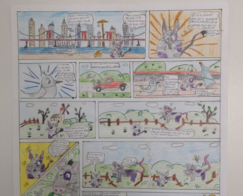 Après des heures passées à réfléchir au storyboard, à crayonner pour trouver l’idée du personnage et du décor, à mettre en couleurs,…le résultat est impressionnant.